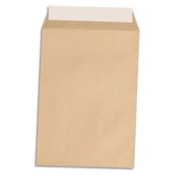 Paquet de 125 pochettes plates kraft brun recyclé 90g, 24 : 260x330mm. Autoadhésive