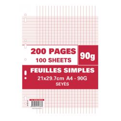 Sachet de 200 pages copies simples grand format A4 grands carreaux