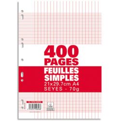 Sachet de 400 pages copies simples grand format A4 grands carreaux