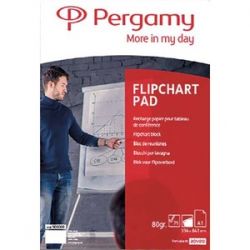 PERGAMY Recharge papier pour chevalets, Rouleau de 50 feuilles 56g recyclé Blanc Uni, Format...