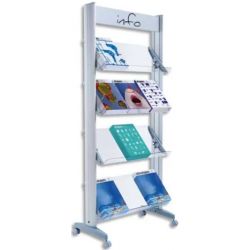 PAPERFLOW Présentoir mobile, 4 tablettes XL orientables. En alu et métal. Dim. L72 x H167,8...
