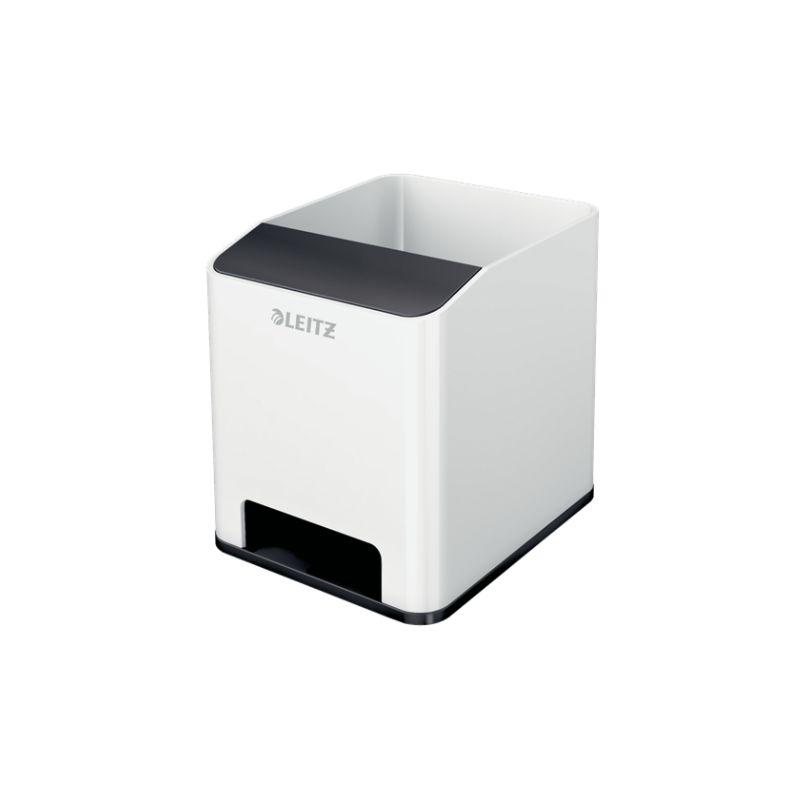 LEITZ Pot crayons booster de son Dual. Dim : L9 x H10 x P10,1 cm. Finition brillante. Coloris Blanc/Noir