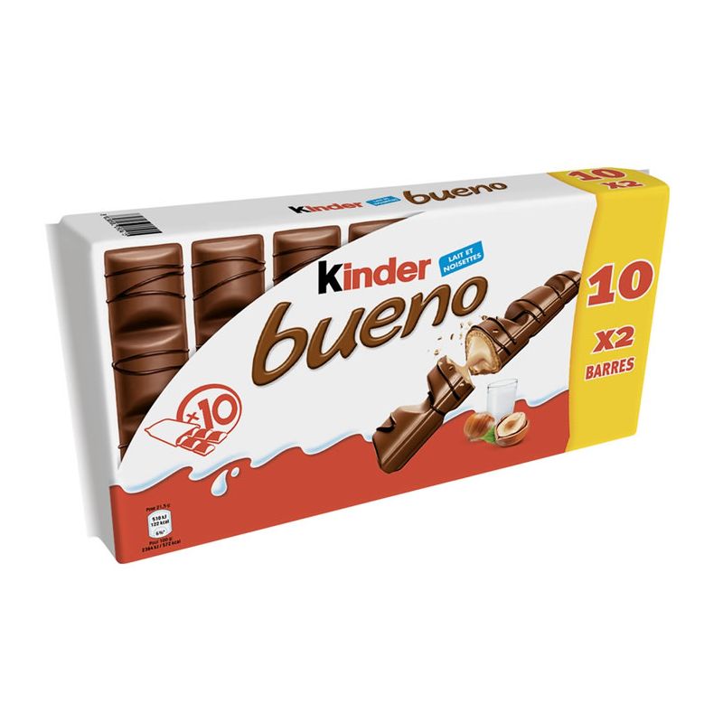 | Désignation légale du produit | KINDER BUENO : Fines gaufrettes enrobées de chocolat au lait, fourrées lait et noisettes broyées |