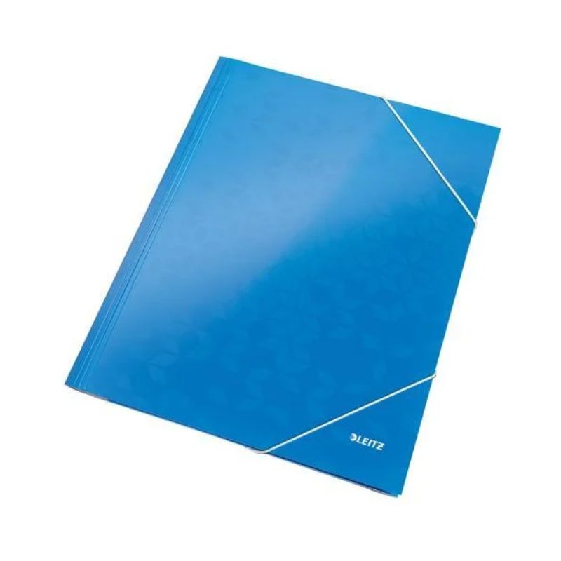 LEITZ Chemises WOW 3 rabats à élastiques, en carte pélliculée, coloris Bleu azur