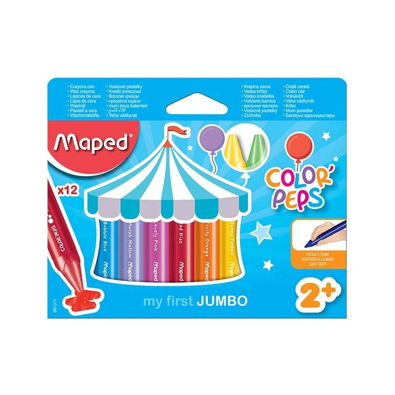 Crayons cire doux aux couleurs vives. Corps sous gaine de protection papier qui ne salit pas les mains.