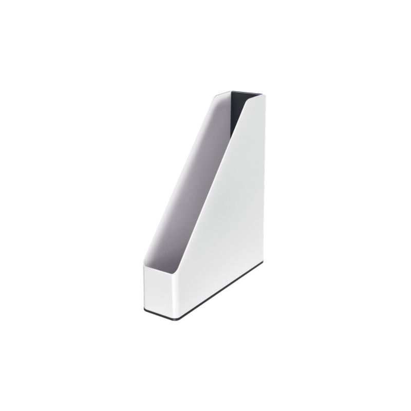 LEITZ Porte-revues Dual - Dim : H31,8 x P27,2 cm. Dos 7,3 cm. Finition brillante. Coloris Blanc/Noir