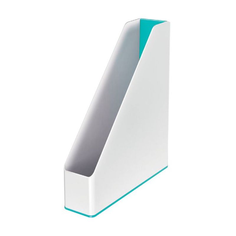 LEITZ Porte-revues Dual - Dim : H31,8 x P27,2 cm. Dos 7,3 cm. Finition brillante. Coloris Blanc/Menthe