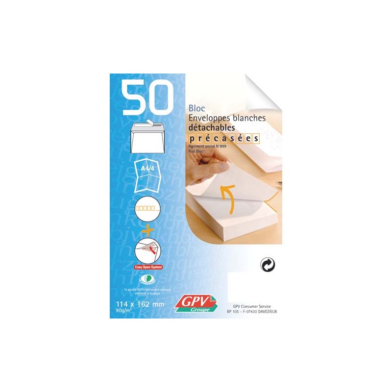 • GPV Bloc de 50 enveloppes post bloc 90 grammes format 110x220 mm