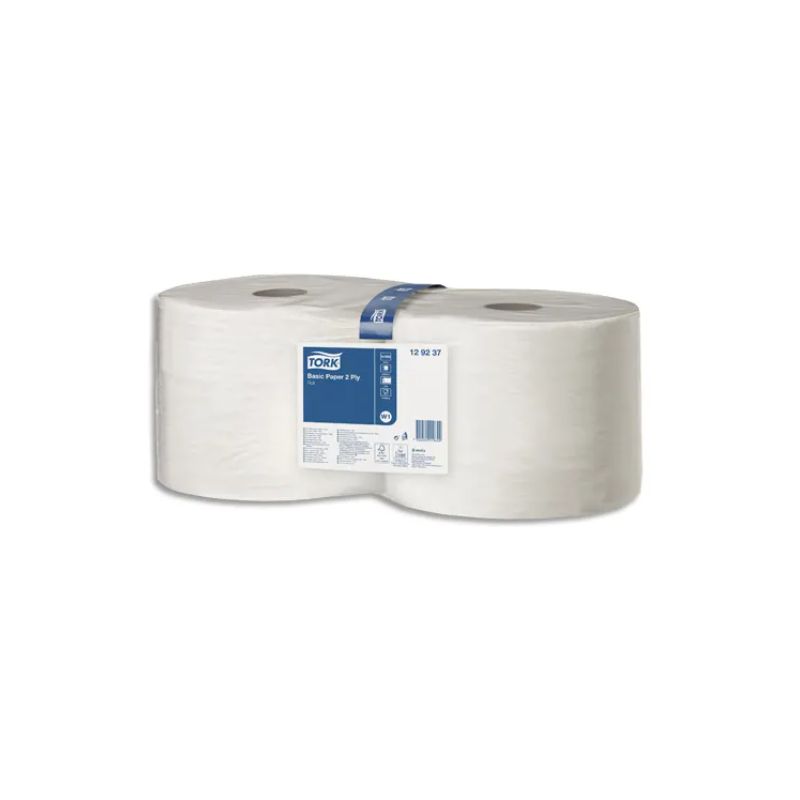 • TORK Lot de 2 Bobines papier d'essuyage Basic W1 510 mètres, 2 plis, Format prédécoupé 23,5 x 34 cm blanc