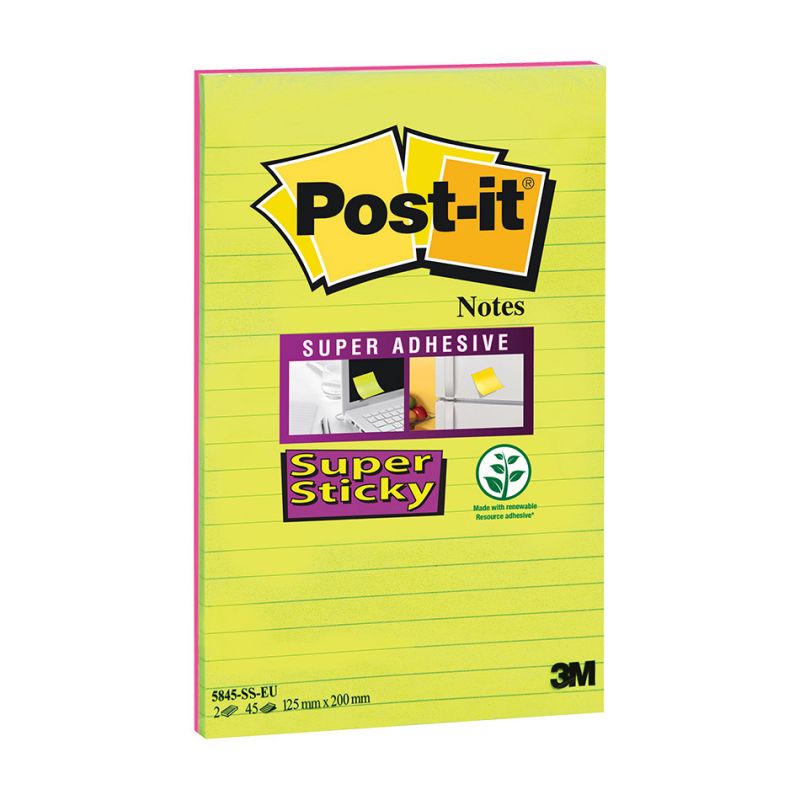POST-IT Lot 4 blocs assortis SuperSticky ligné 12,5x20cm 45 feuilles Coloris néon