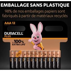 Piles alcalines AAA Duracell Plus 100%, 1.5V LR03 MN2400, lot de 12 piles