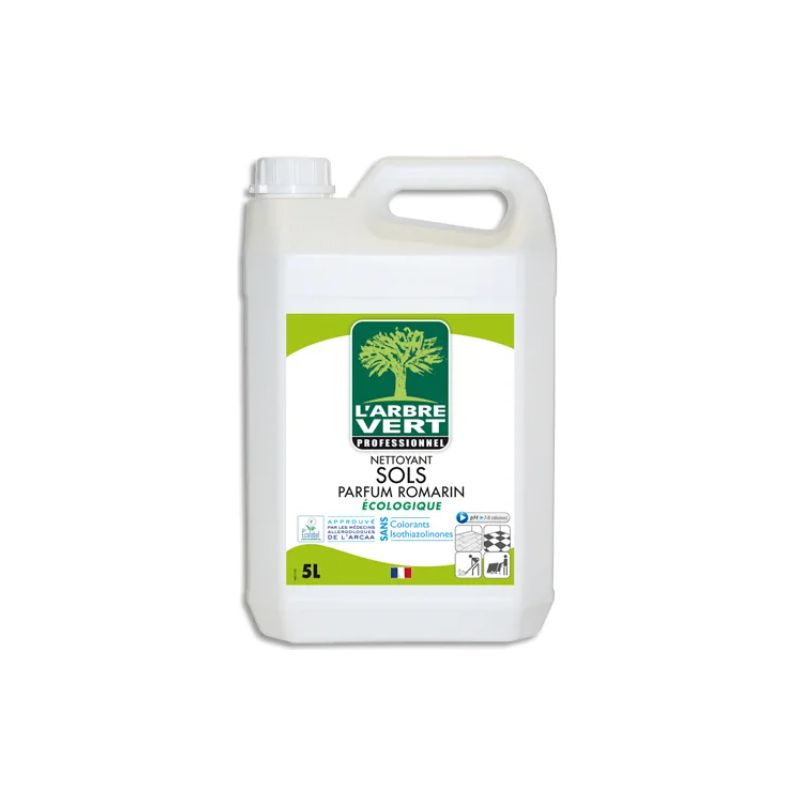 • L'ARBRE VERT Bidon 5 Litres Nettoyant sols, sans colorant ni allergènes, parfumé au romarin Ecolabel