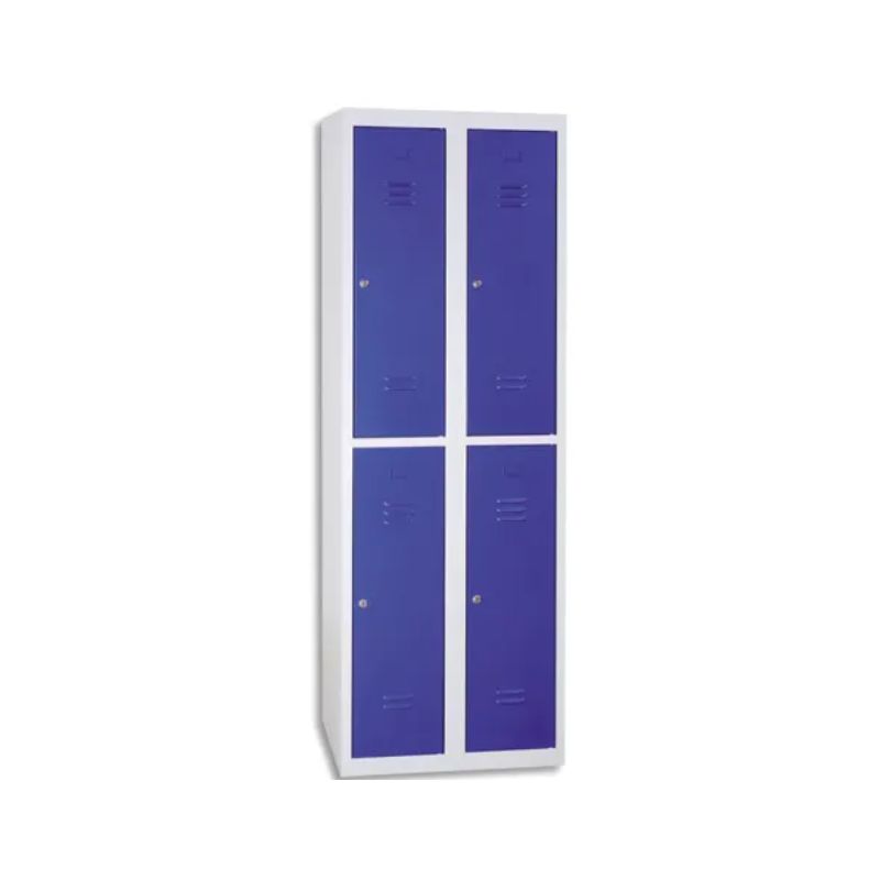 En tôle 6/10ème. Multiples perforations pour une meilleure ventilation. Fermeture 2 clefs. Livré prêt à monter. Peinture époxy. Corps gris, portes bleues.